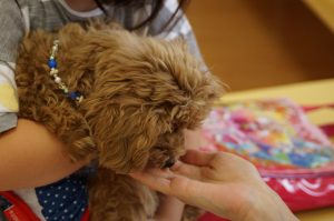 他にも、お耳を触る練習や、お口を触る練習など、お手入れや歯みがきの練習をしました!
