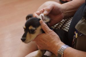 まずは、いろんな人からおやつを貰って、場所や人に慣れる練習からです?